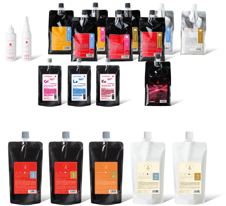 Thioglycolic acid cysteamine reduces hair slowly.Therefore, this medicinal solution makes it possible to take time without worrying after applying it to the hair.Hairdressers can focus on their skills because they can think about the post-application period with their experience and sensibility.Slow reduction is also effective for aging hair.While remaining moist and glossy, the hair stands up softly, and the effect of straight or permed hair lasts for a long time.And even if a long time has passed since the treatment, the tips of the hair do not become dry.As we entered the year 2021, procedures in the acidic area rapidly gained interest due to their excellent results.As a result, Anses, which was developed as a pioneer in the acidic era, was further reevaluated.This was about the time when almost ten years had passed from its development.Today, there are four categories of medicinal solutions in the acidic region.These are acid straight, acid straight + acid, acid heat correction + reducing agent, and acid heat correction.The acidic region is still an unknown area.Many medicinal agents and treatment agents in the acidic region will be made in the future.Still we believe that ANCRE is one of the cornerstone chemicals.